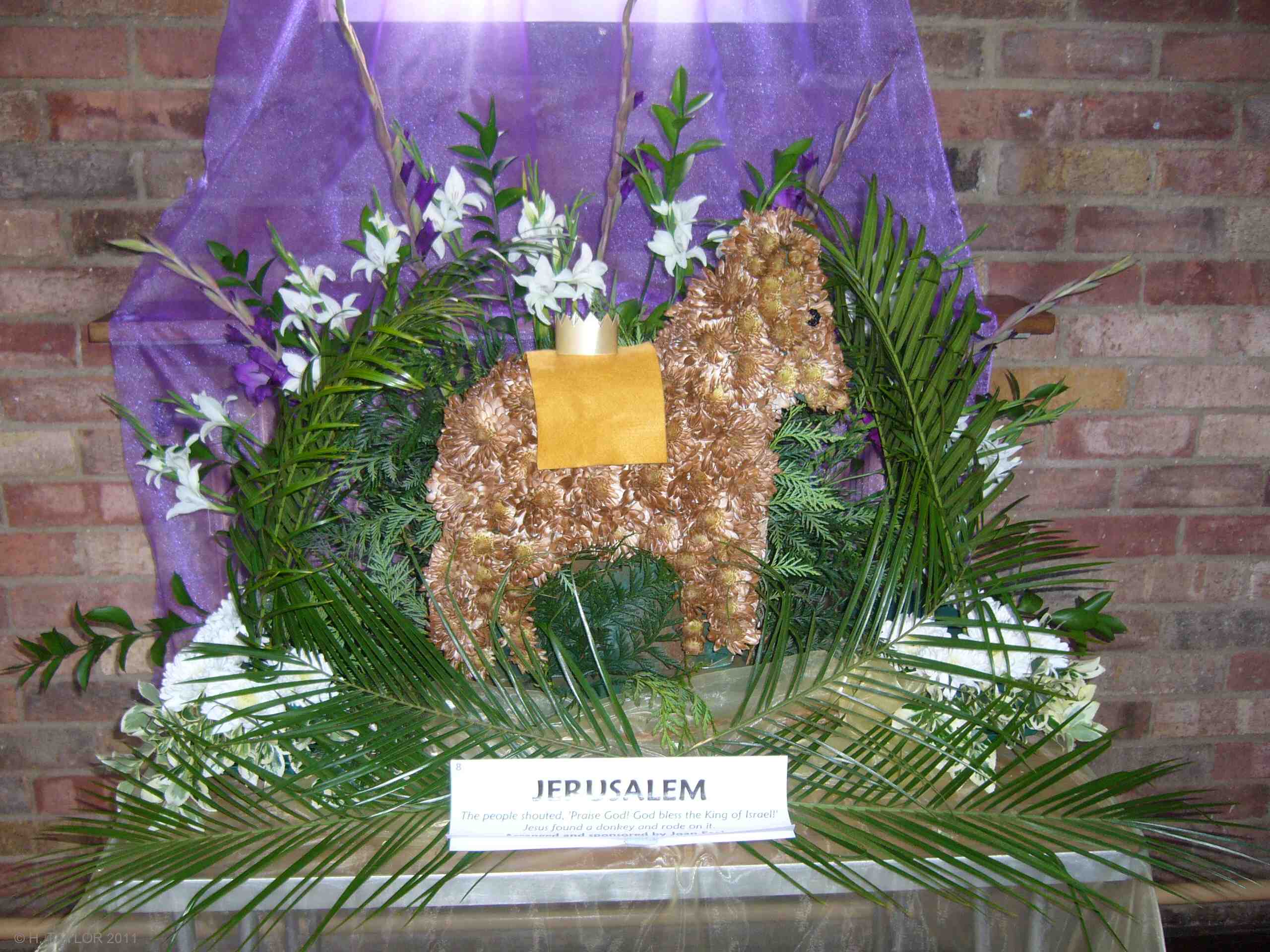 Jerusalem The people took branches of palm trees and went to meet Jesus shouting, 'Praise God! God bless the King of Israel!' Jesus found a donkey and rode on it. John 12. Prev Next Arranged and sponsored by a member of St. Andrew's Top |